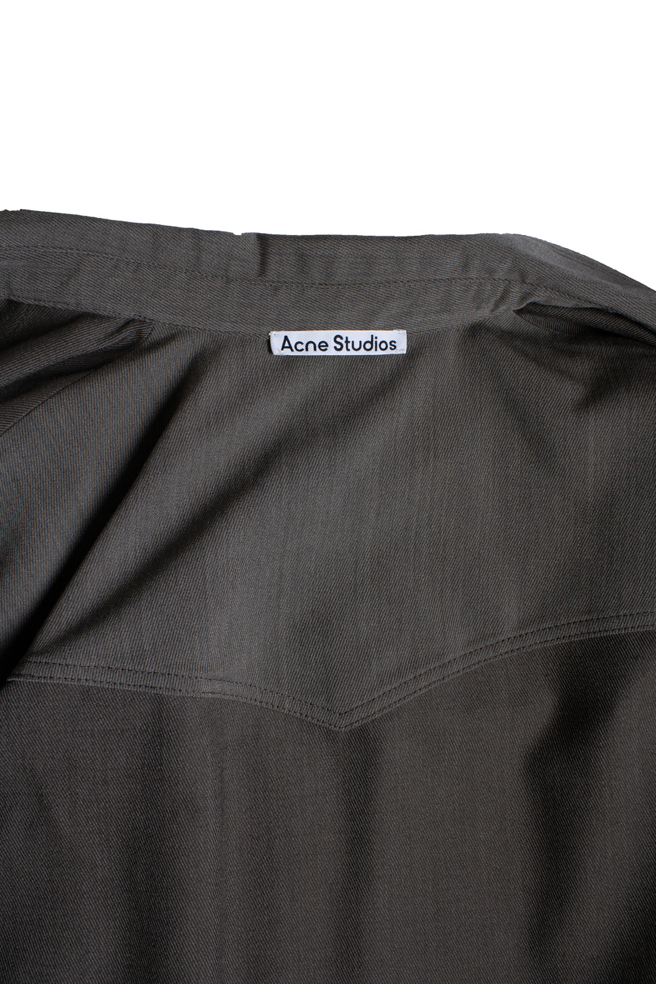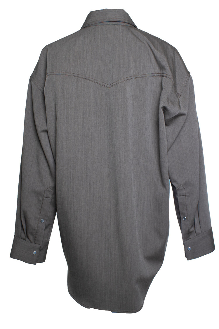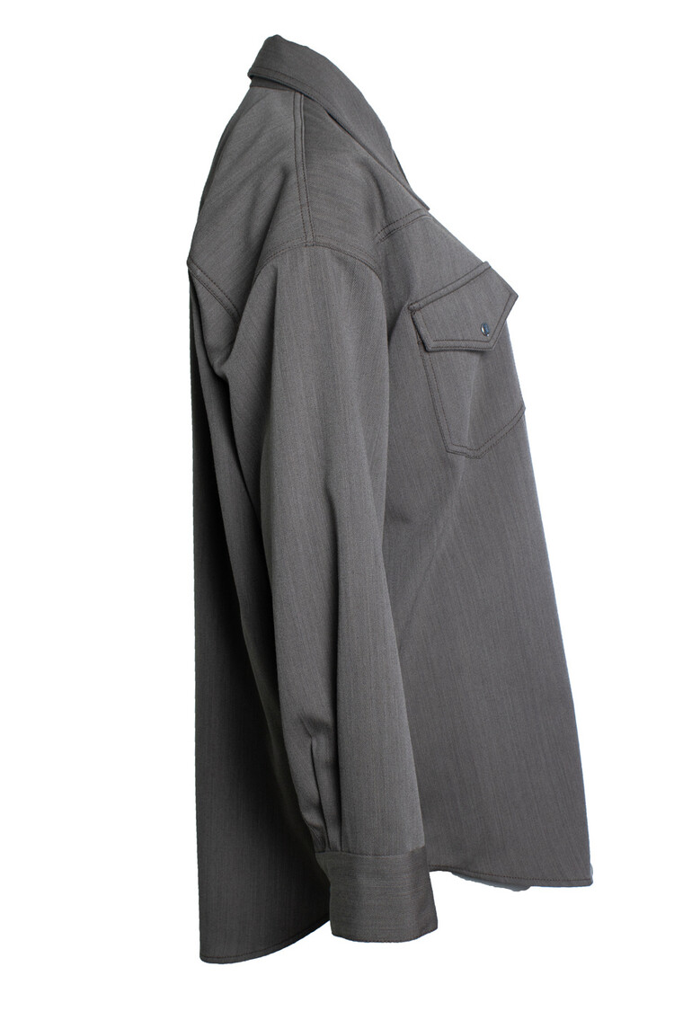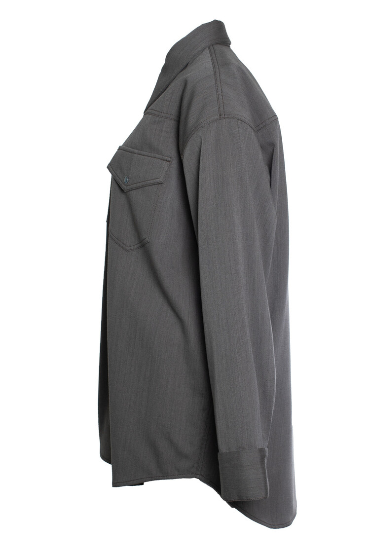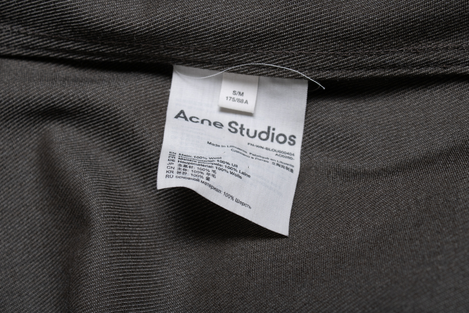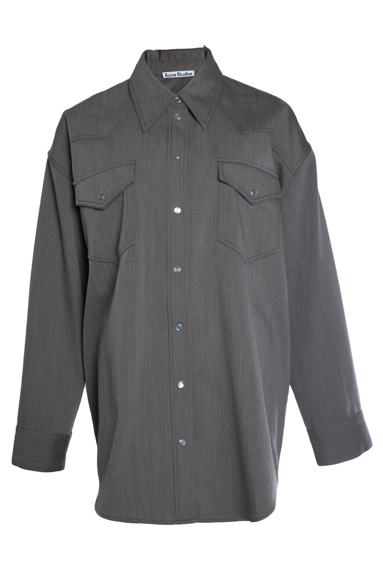 • Acne studios, Brown and grey overshirt. The item has a stain under the buttons (not visible)
