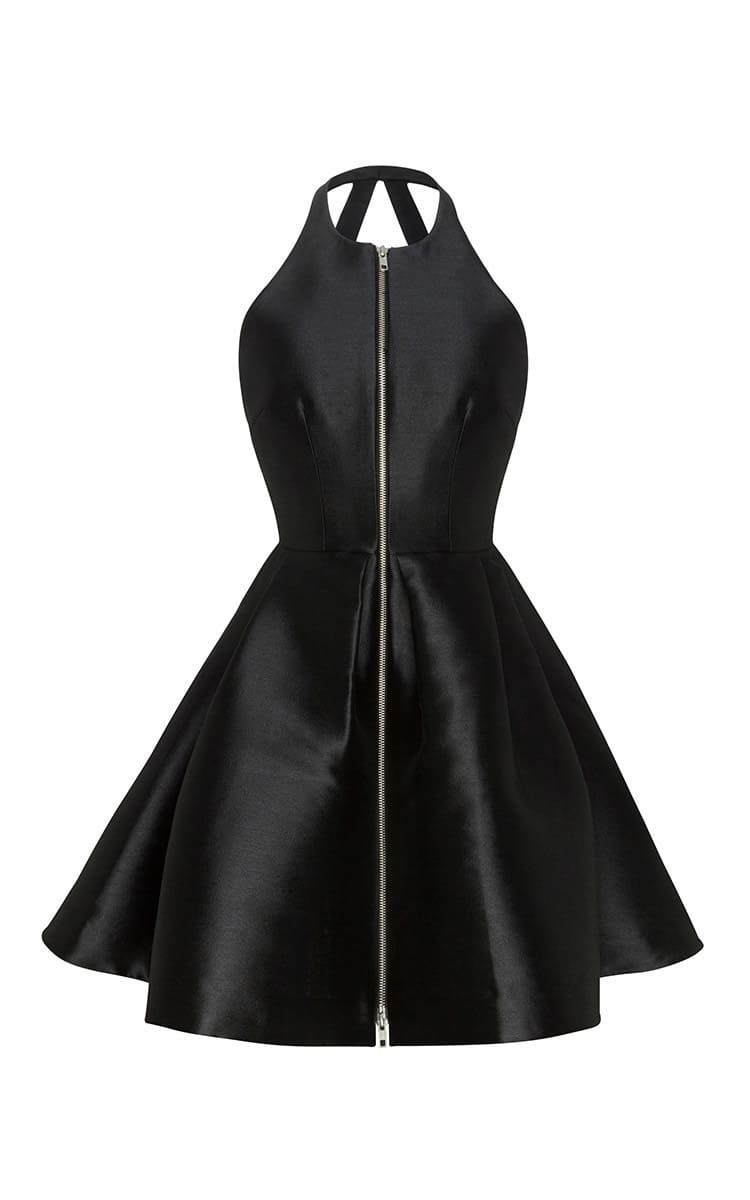 This elegantly designed Alex Perry dress features a halter styled neckline, a mini length hemline, and a full-bodied pleated A-line skirt.