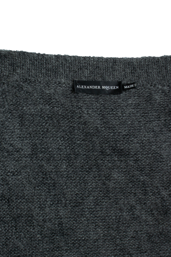 • Alexander McQueen, Grey distressed cardigan. The item is in very good condition.