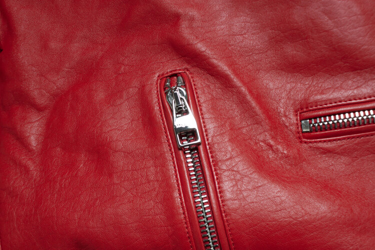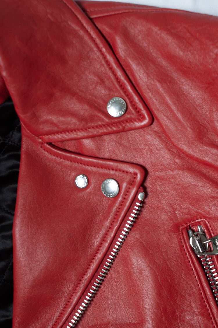 • Alexander McQueen, Red leather biker jacket. The item is in very good condition.