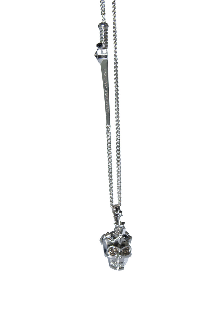 • Alexander McQueen, Silver skull necklace with star crown. The item is in very good condition.