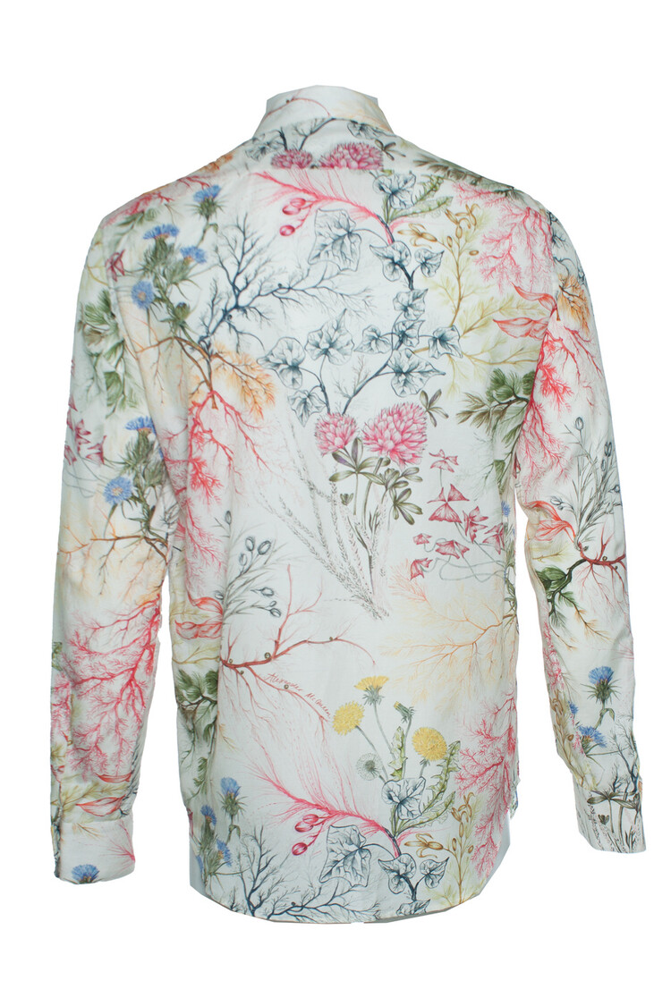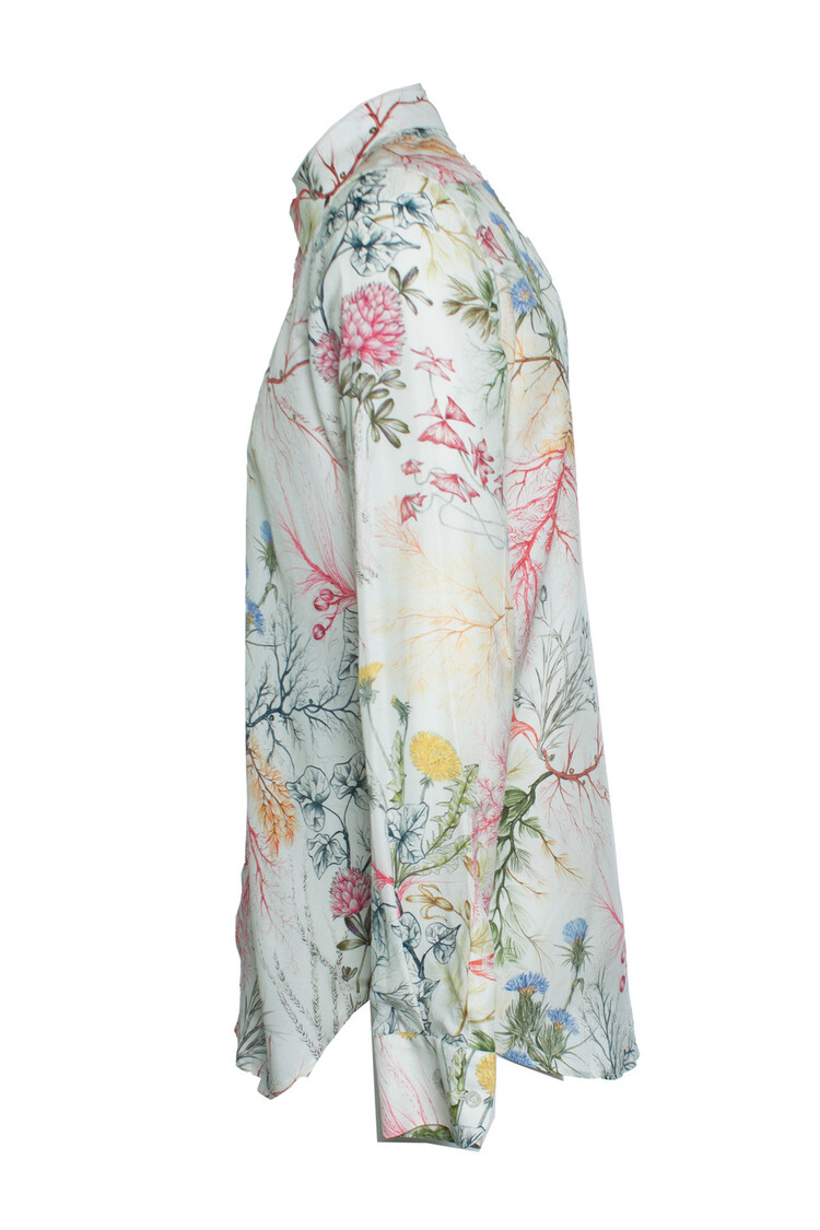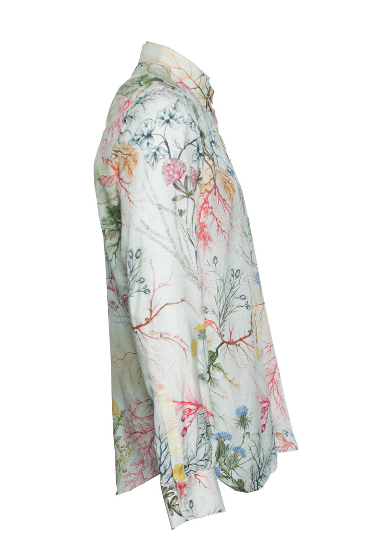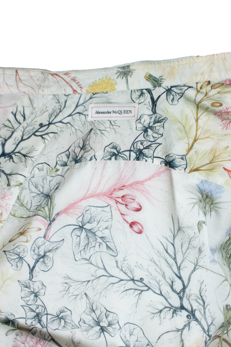 • Alexander McQueen, White shirt with multi floral print. The item is in very good condition.
