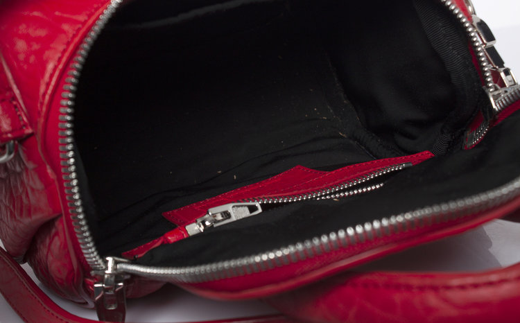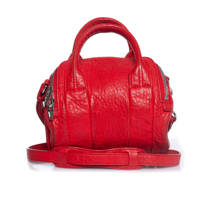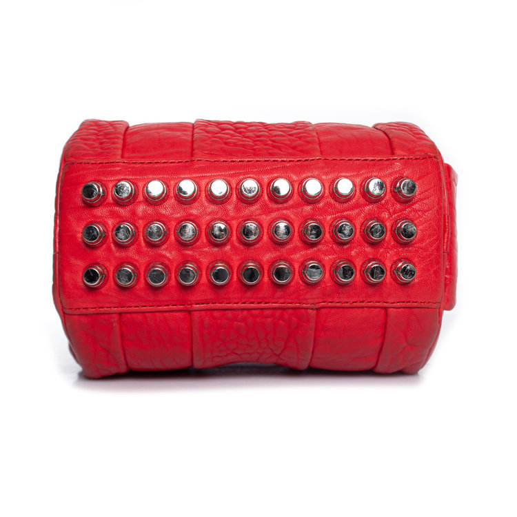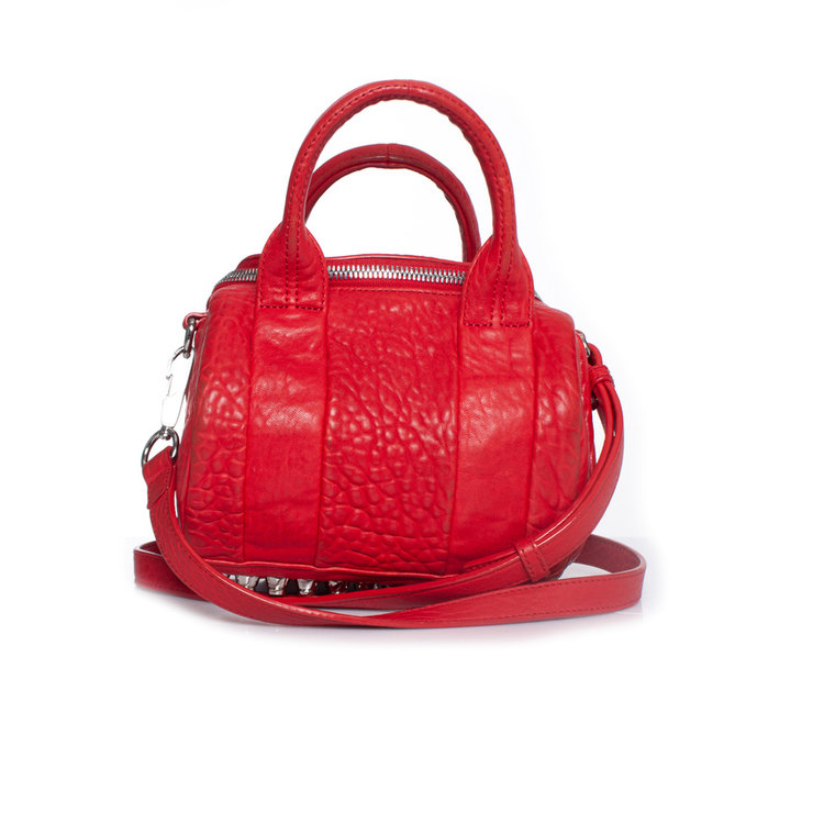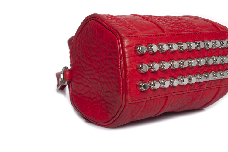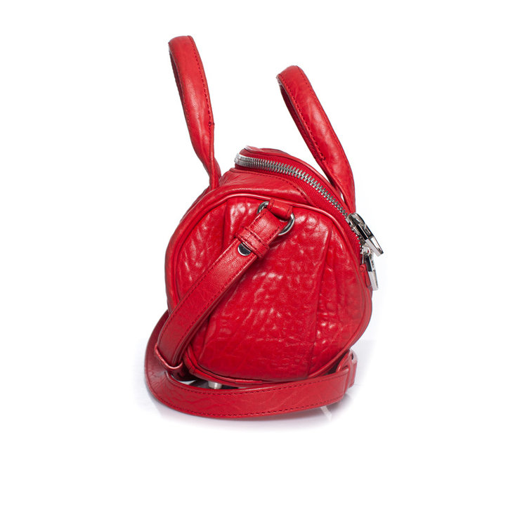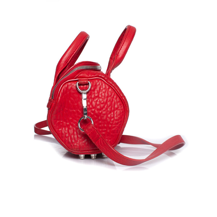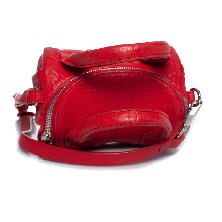 • Alexander Wang, Mini Rockie pebbled leather bag in red. This item has light discoloration, overall in good condition.