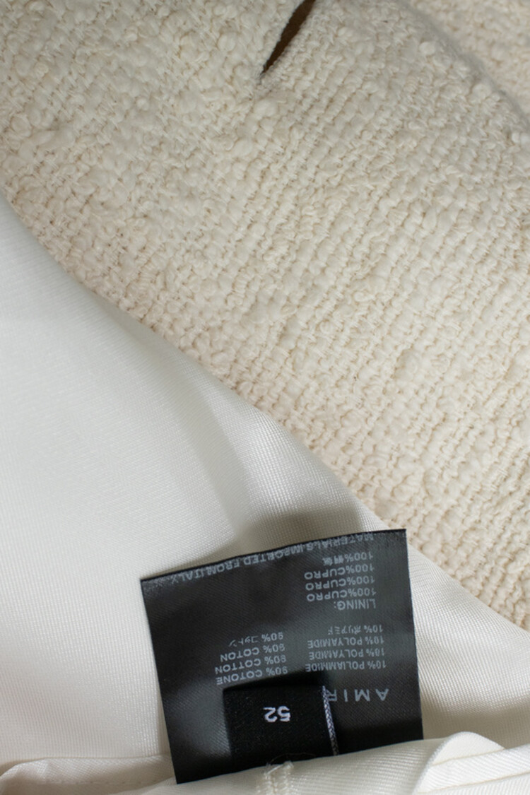 • Amiri, white boucle blazer. The item has stains in the lining under the armpits, further in very good condition.