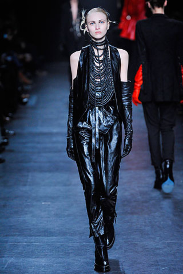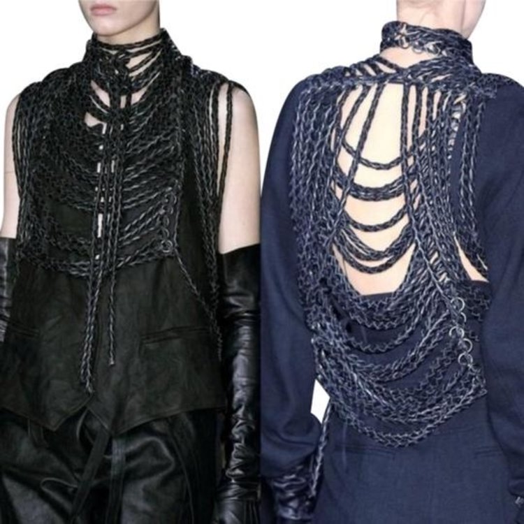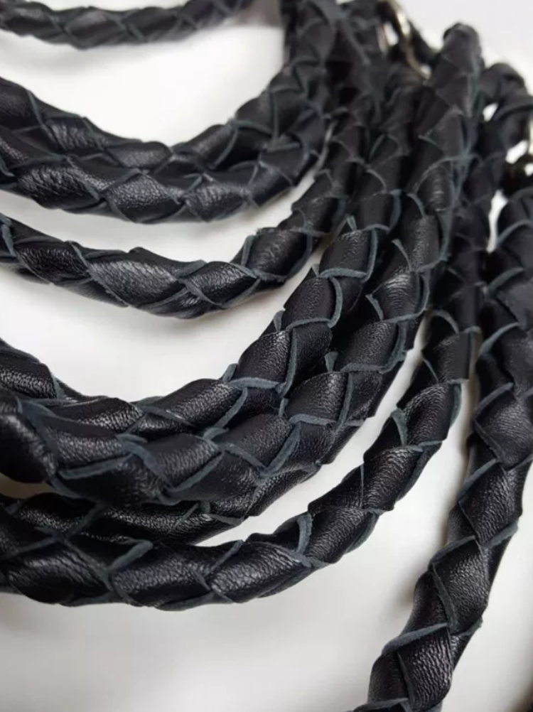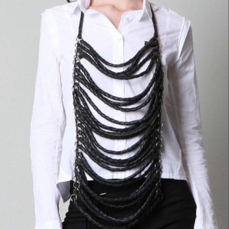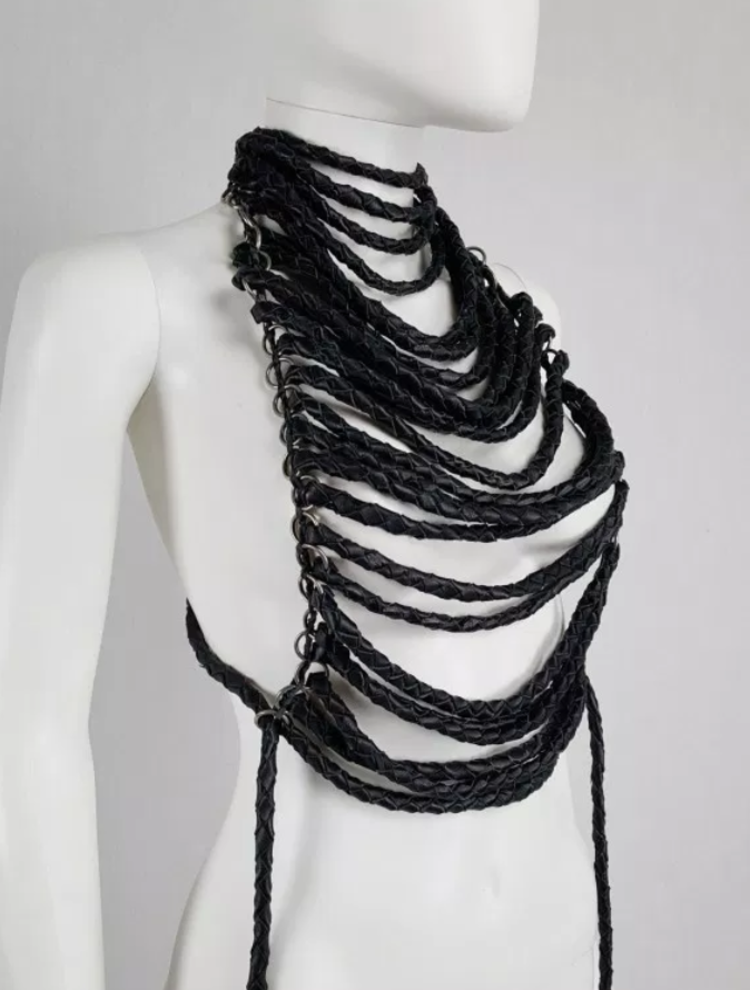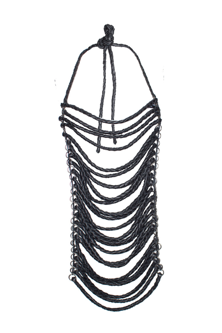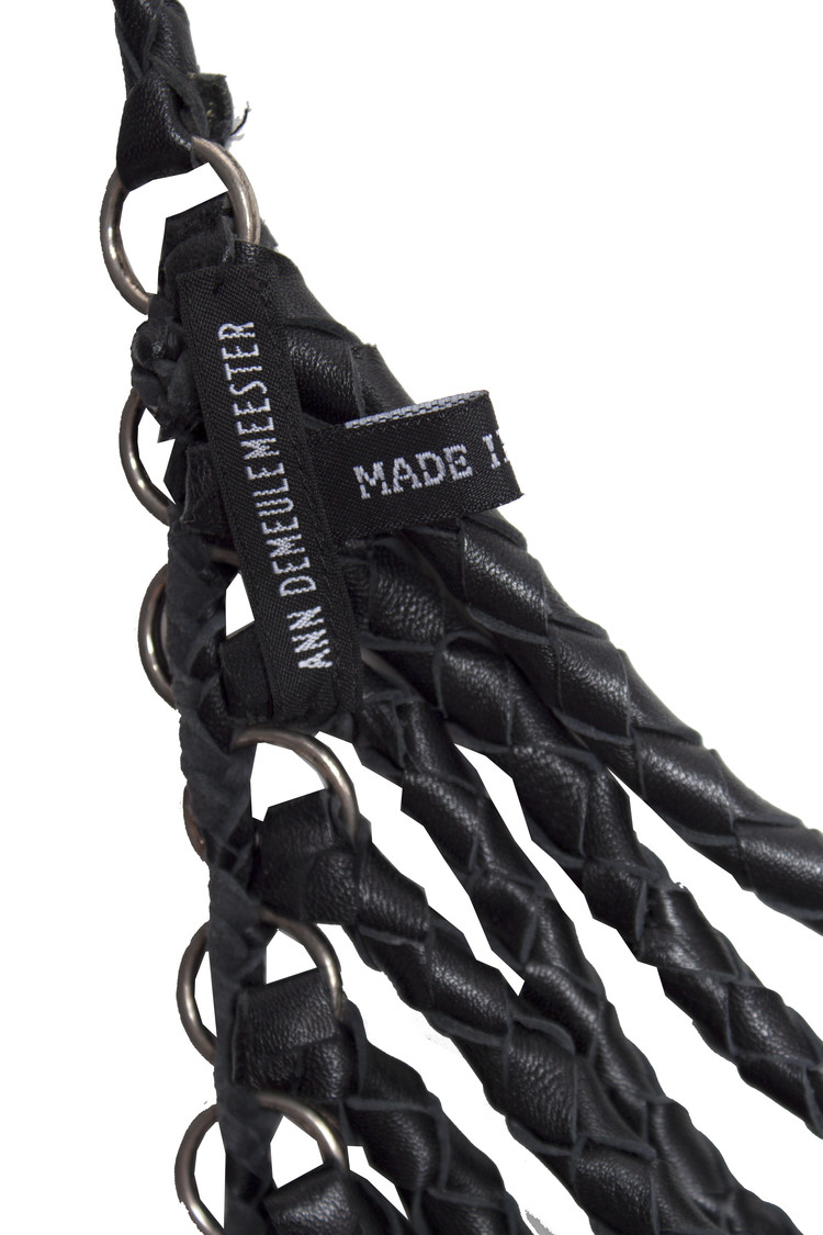 • Ann Demeulemeester, black leather braided necklace with silver rings. The item is new/unworn.