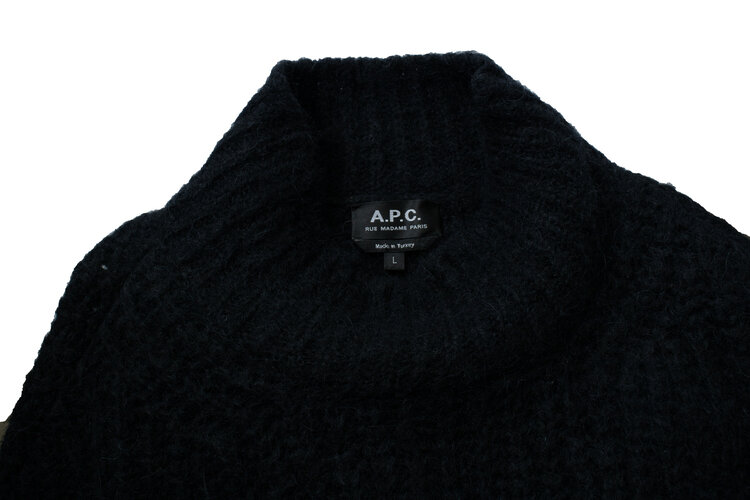 • A.P.C., black ribbed turtle neck sweater. The item is in very good condition.