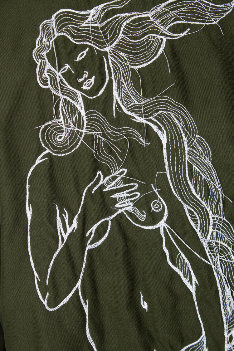 MEASUREMENTS: length 97 cm, width 61 cm, waist 64 cm, shoulder width 50 cm, sleeve length 64 cm