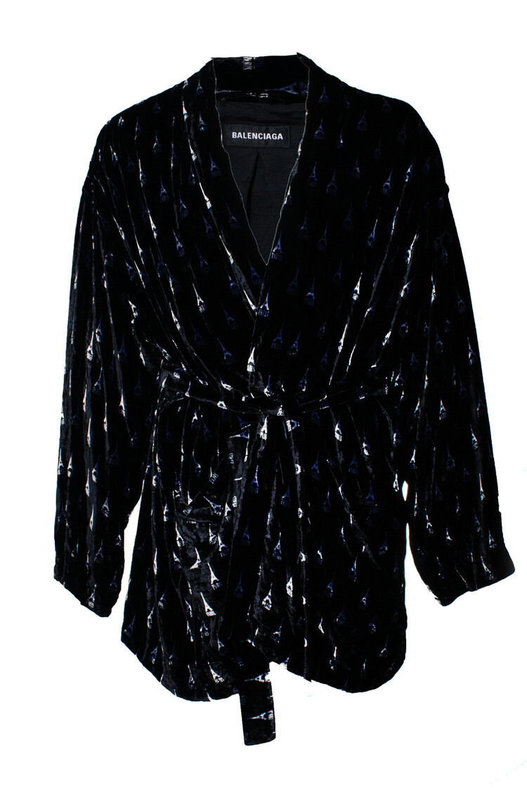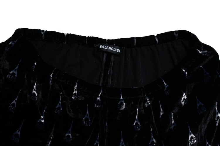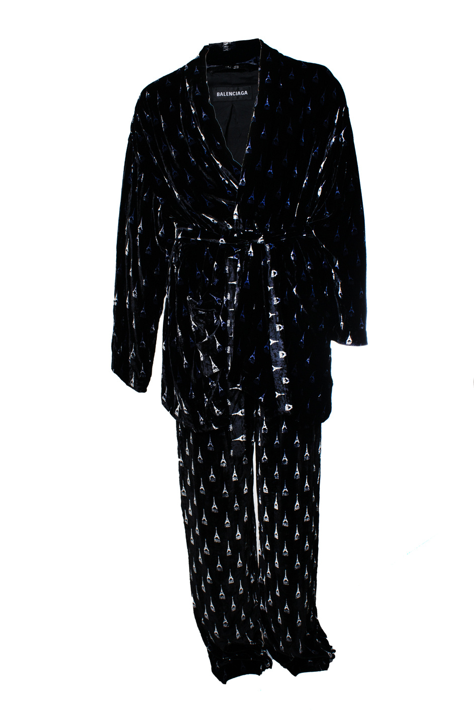 • Balenciaga, black velour pyjama suit with eiffeltower print. The item is in very good condition.