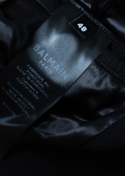 • Balmain, Black and white bomber jacket. The item is in good condition, some very small stains on the sleeve.