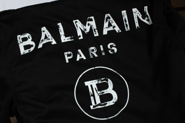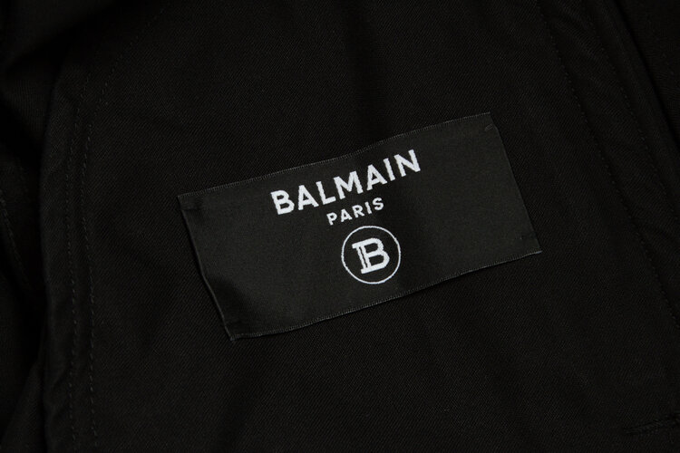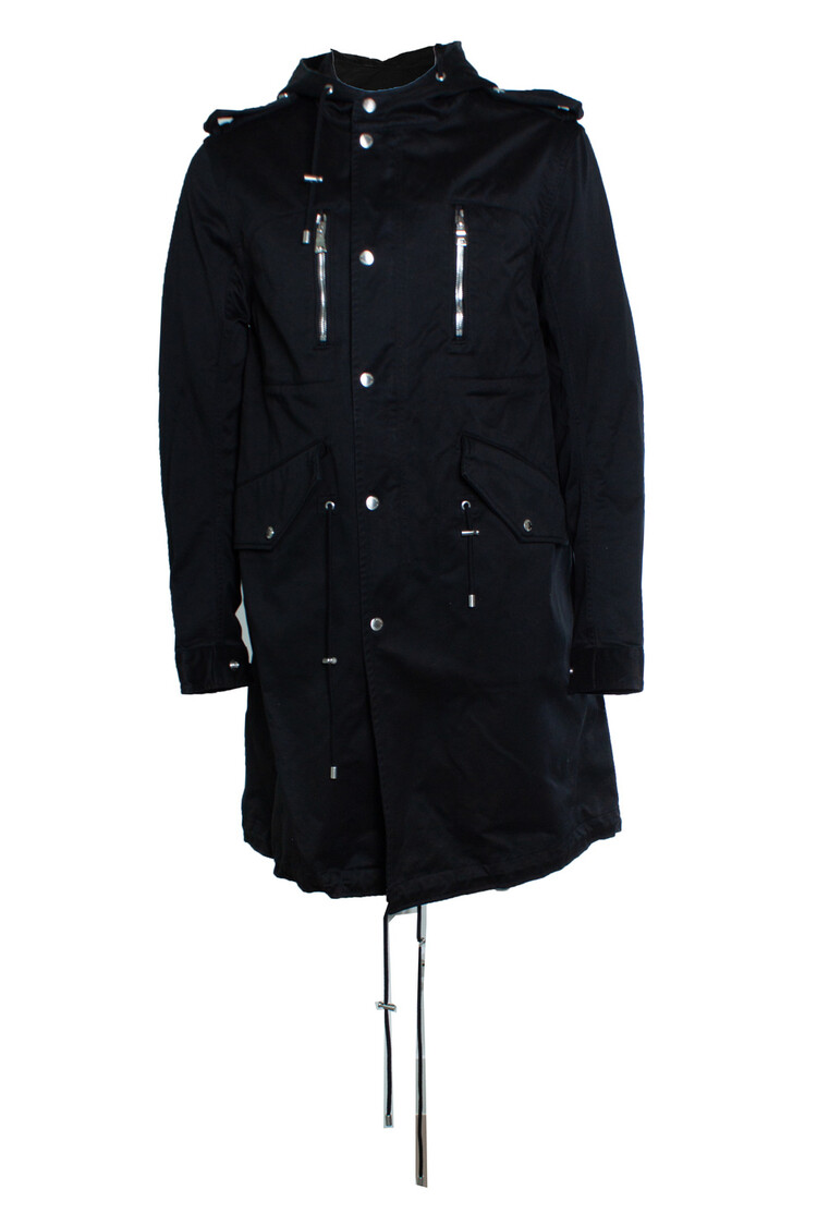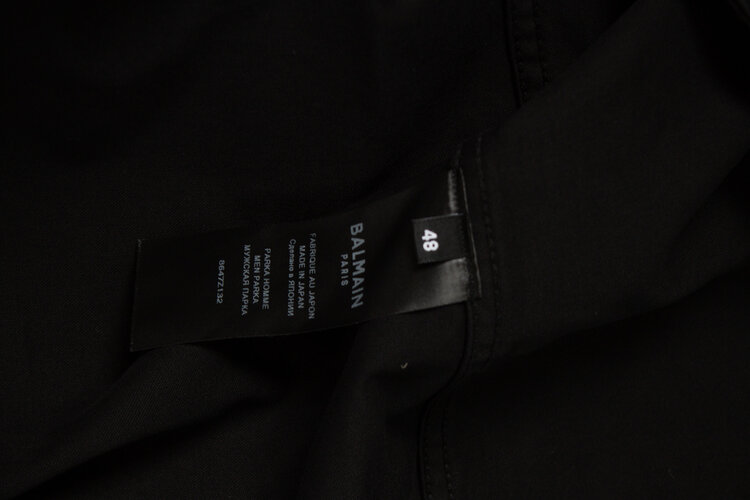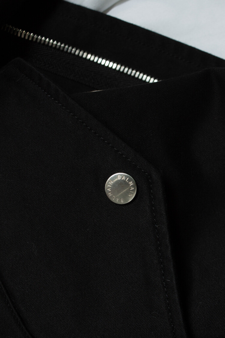 • Balmain, Black cotton hooded parka. The item is in very good condition.