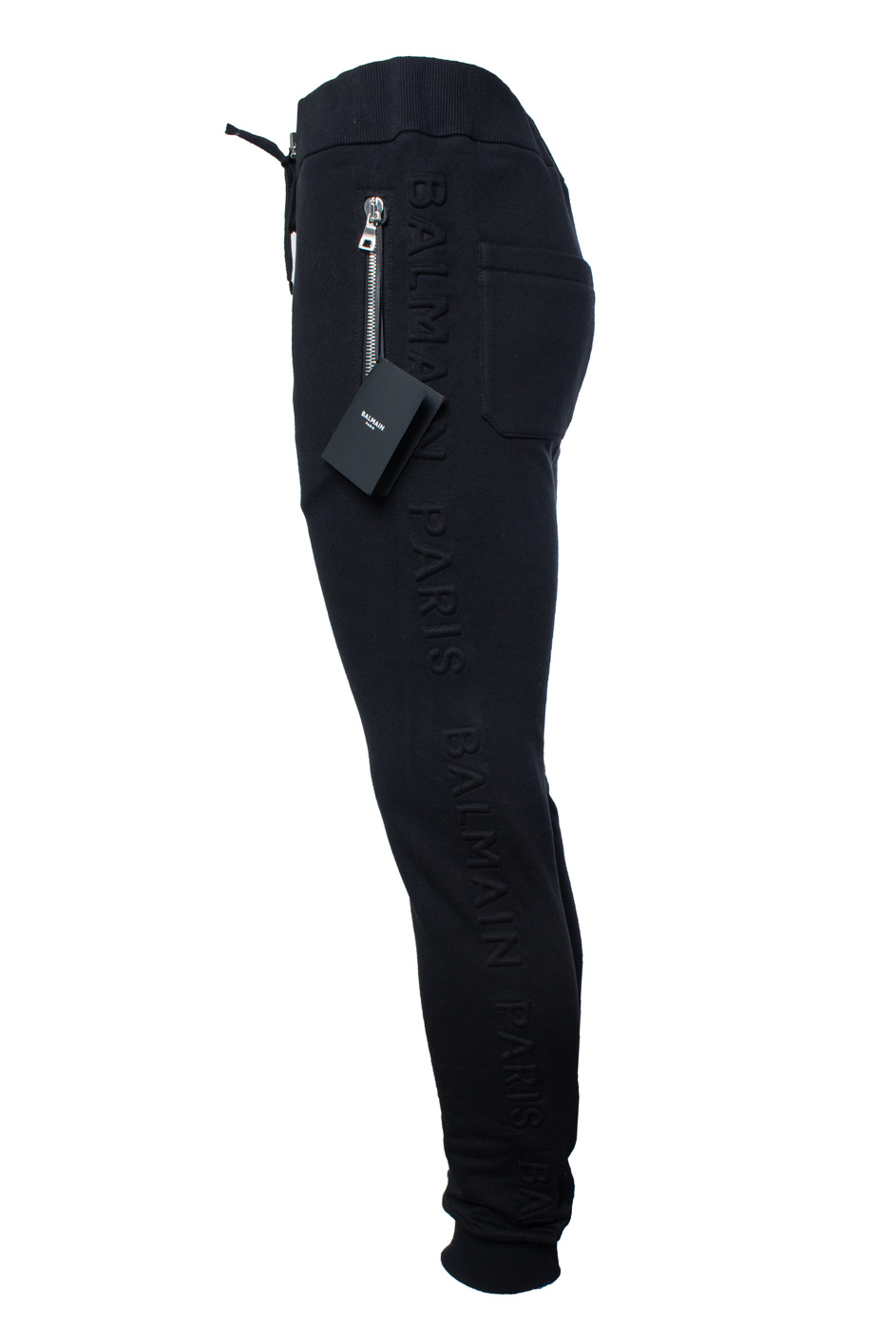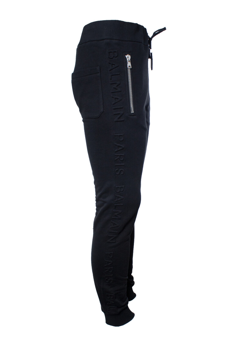 • Balmain, black joggers with embossed logo. The item is new with tag.