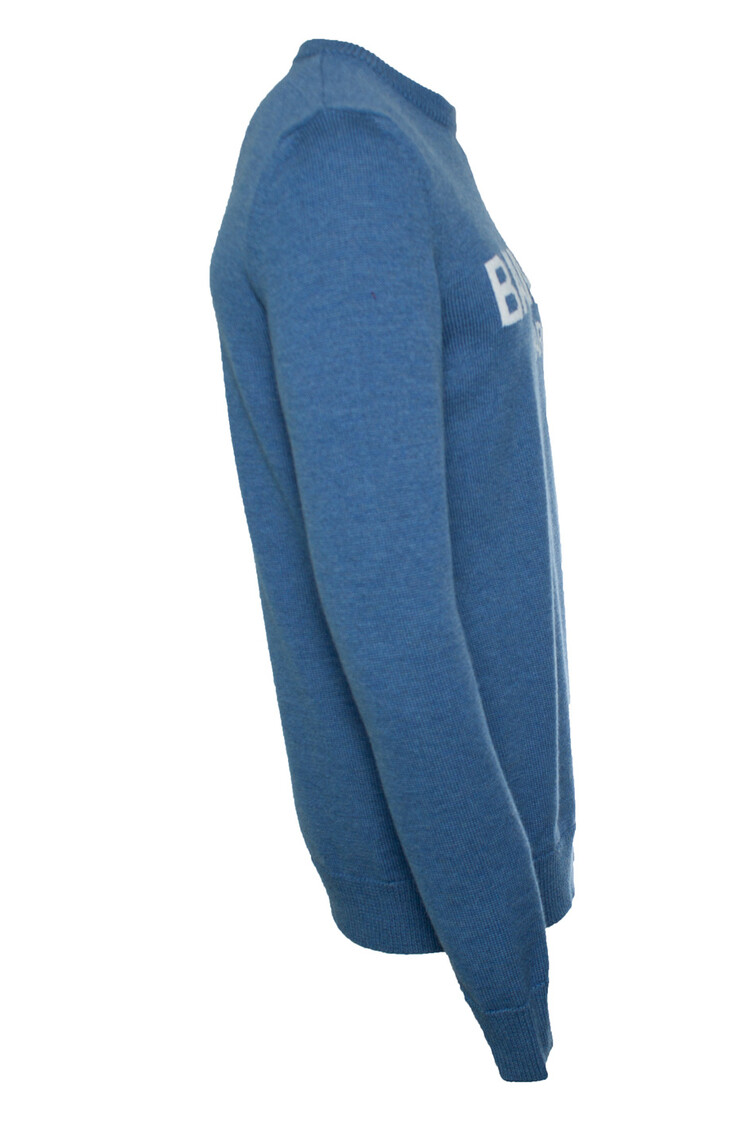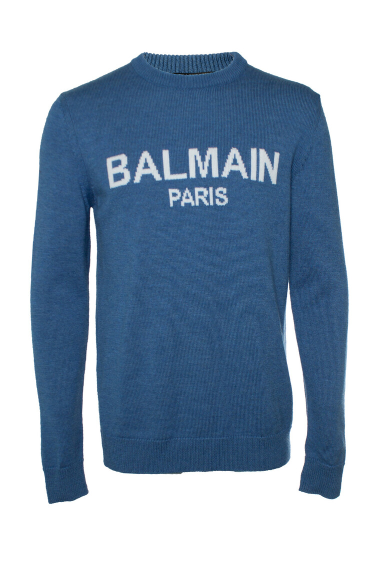 • Balmain, Logo merino knit jumper in blue. The item is in very good condition.