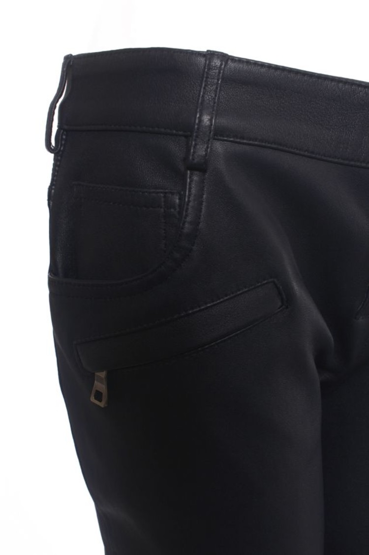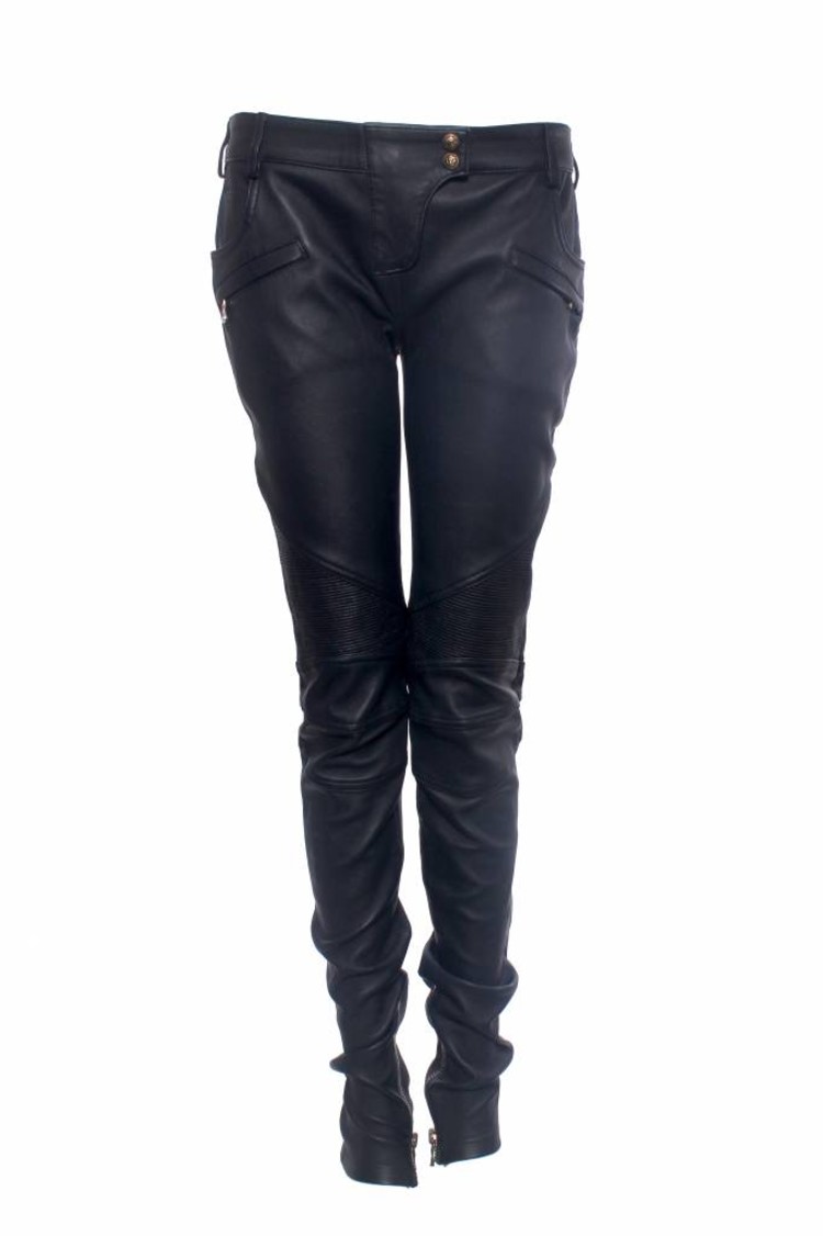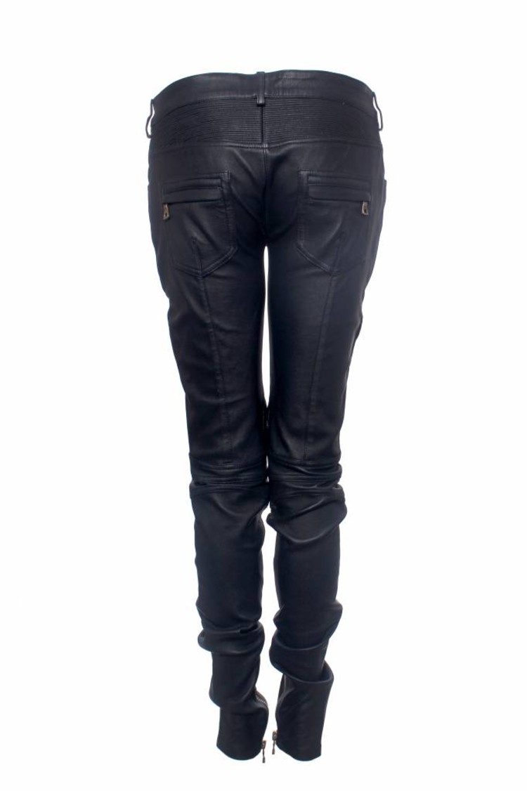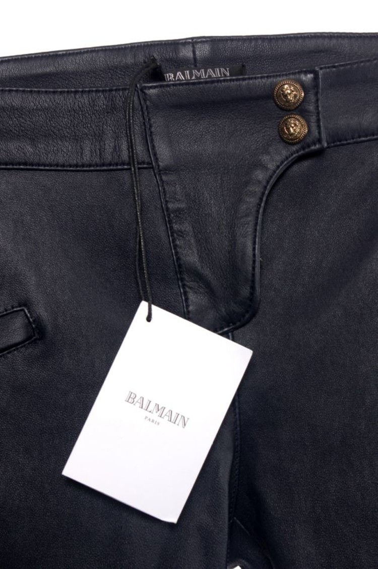 Balmain low rise biker signature leather pants in dark blue with golden hardware. This piece is totally new and has the price tag on it. Nice biker details in front and back. The über fashion item of The House Of Balmain.