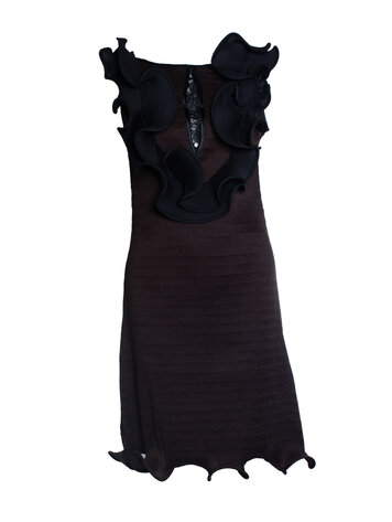 Arrey Kono, Ruffled and pleated midi dress in black and brown. The item is in very good condition.