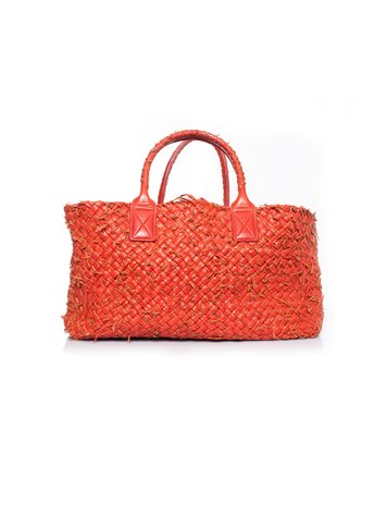 Bottega Veneta, Brown leather wallet on a chain with gold-tone lurex yarn.