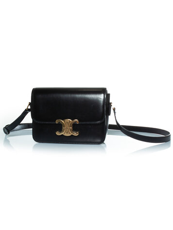 Celine, Teen triomphe bag in black shiny calfskin leather