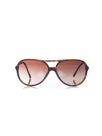 Chanel, Brown leather CC Aviator sunglasses. The item has a scratch in the polarized layer on the left lens, which doesn’t disturb the view further in very good condition. Comes with dustbag.
