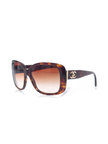 Chanel, CC turnlock square sunglasses in tortoise print. The inside of the temples are slightly faded, the outside of the glasses are in very good condition. Comes with dust cover and box.