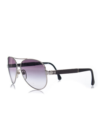 Chanel, Pilot sunglasses with metal silver frame and 18-karat white gold lenses. This item is in good condition with very light scratches on both lenses.