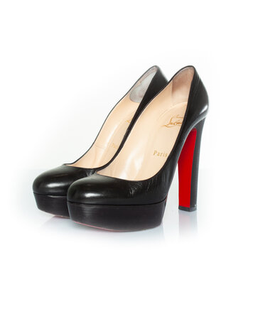 Christian Louboutin, Very prive peep toe pump in python leather. The item is in very good condition. Small wear on one of the heels. Comes with dustbag,