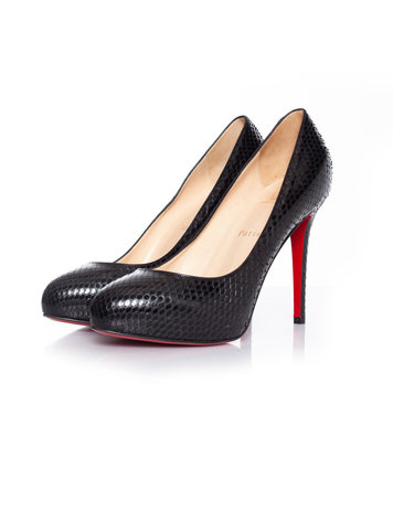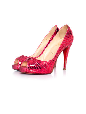 Christian Louboutin, Banane kaki platform pumps in patent leather. This piece has been worn once and is in very good condition. The item has a scuff on the inside of the left heel. Comes with the original box and an extra set of heels.