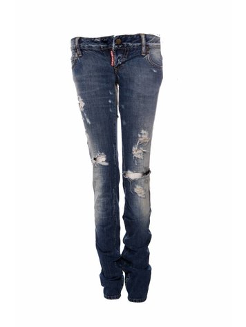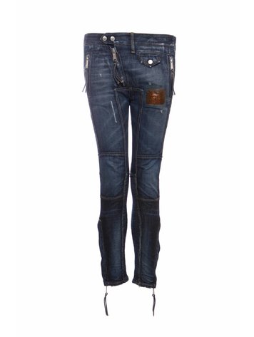Dsquared2, middle blue biker jeans with shades underneath the pockets on the back, 3 silver buttons and silver logo plate in size IT40/xs. This product has been worn only a few times and is in very good condition.
