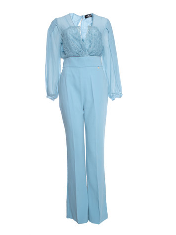 Elisabetta Franchi, blue jumpsuit with lace details. The item is in good condition. The button on the back is sewn together.