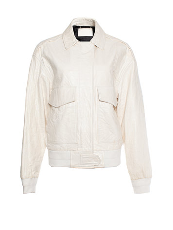 Givenchy, Portobello leather bomber jacket in off-white. The item is in good condition with minor signs of wear such as minimal discoloration and a melting spot on the left sleeve.