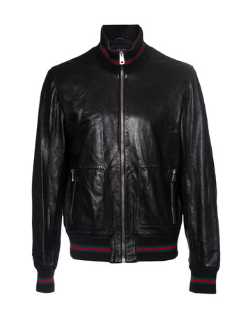 Gucci, Black leather jacket with web detail