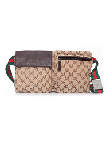 Gucci, Brown monogram canvas fanny pack. The item is in very good condition with a very light scratch one the clasp.