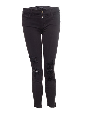 J Brand, grey ripped cropped stretch jeans. This item is in very good condition.