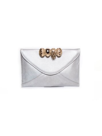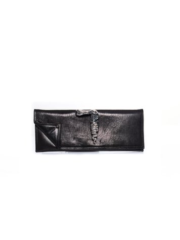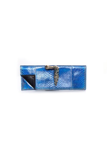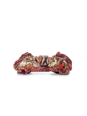 Maison Du Posh, Brown python leather butterfly clutch with 24 K gold plated finger ring. The item is new and comes with the dustbag. The bag has a magnetic flap closure and the interior is fully lined with soft black leather and has a storage compartment