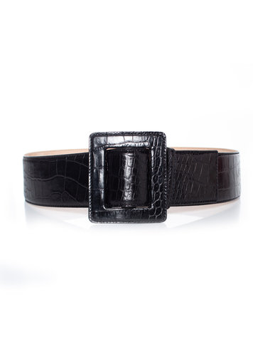 Max Mara, Croc stamped leather belt in black. The item is in very good condition.