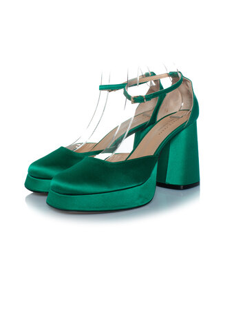 Paul Warmer x Roberto Festa, satin platform sandals in emerald green. The item is new with some dents on the sole.