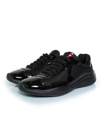 Prada, shiny leather broque lace up platform sneakers. The item has a few very small sign of wear, overall in good condition.