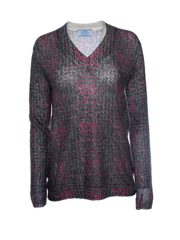 Prada, pink and green printed v neck sweater