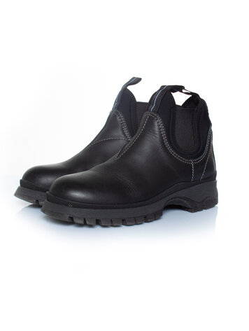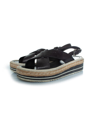 Prada, Leather boots in black. The item has a tear on the left outside and some dents on both heels. Logo on the left sole has some damage. Comes with box and dustbag.