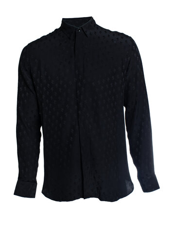 Saint Laurent, Long jacquard woven blazer in black. The item is in very good condition on the exterior. Very light discoloration on the lining around the armpits.