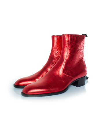 Saint Laurent, Metallic red Wyatt boots. The item is new - unworn.