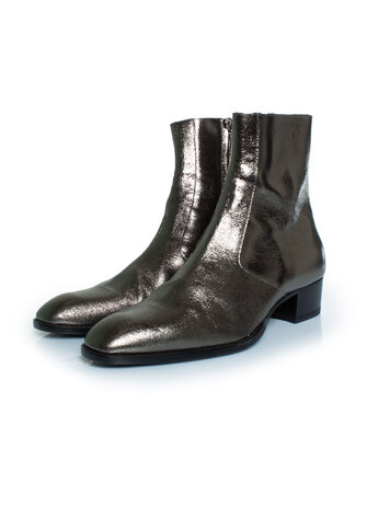 Saint Laurent, Metallic silver Wyatt boots. The item is in very good condition.