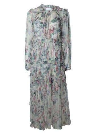 Zimmermann, Jasper floral ruffle maxi dress in pastel colours. The item is new - unworn. Comes with slip dress.