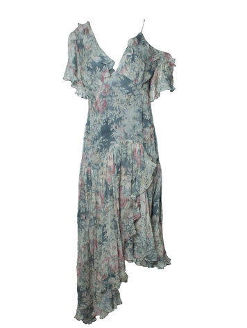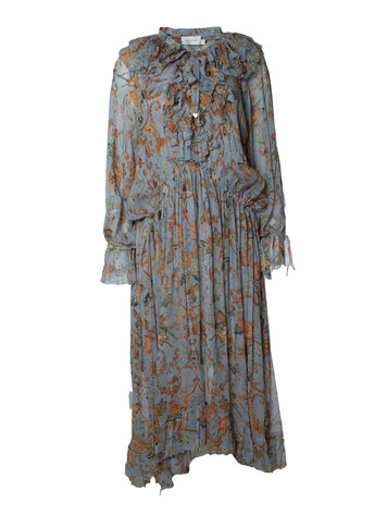 Zimmermann, grey floral printed ruffled trim maxi dress. The item is new - unworn. Comes with slip dress
