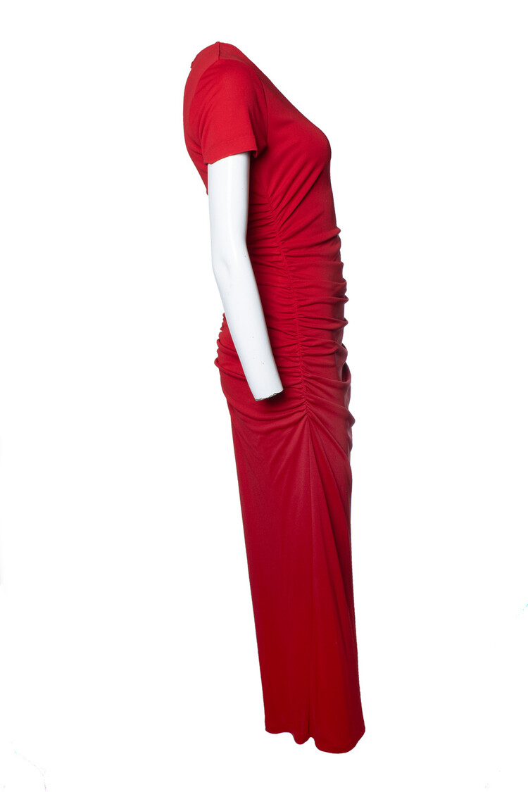 MEASUREMENTS: length 142 cm, width 39 cm, waist 32 cm, shoulder width 37 cm, sleeve length 18 cm