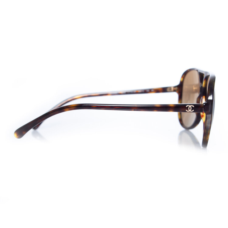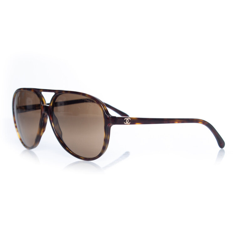 • Chanel, aviator sunglasses in tortoise print. The item is in good condition with some very small scratches on the lenses. Comes with case.