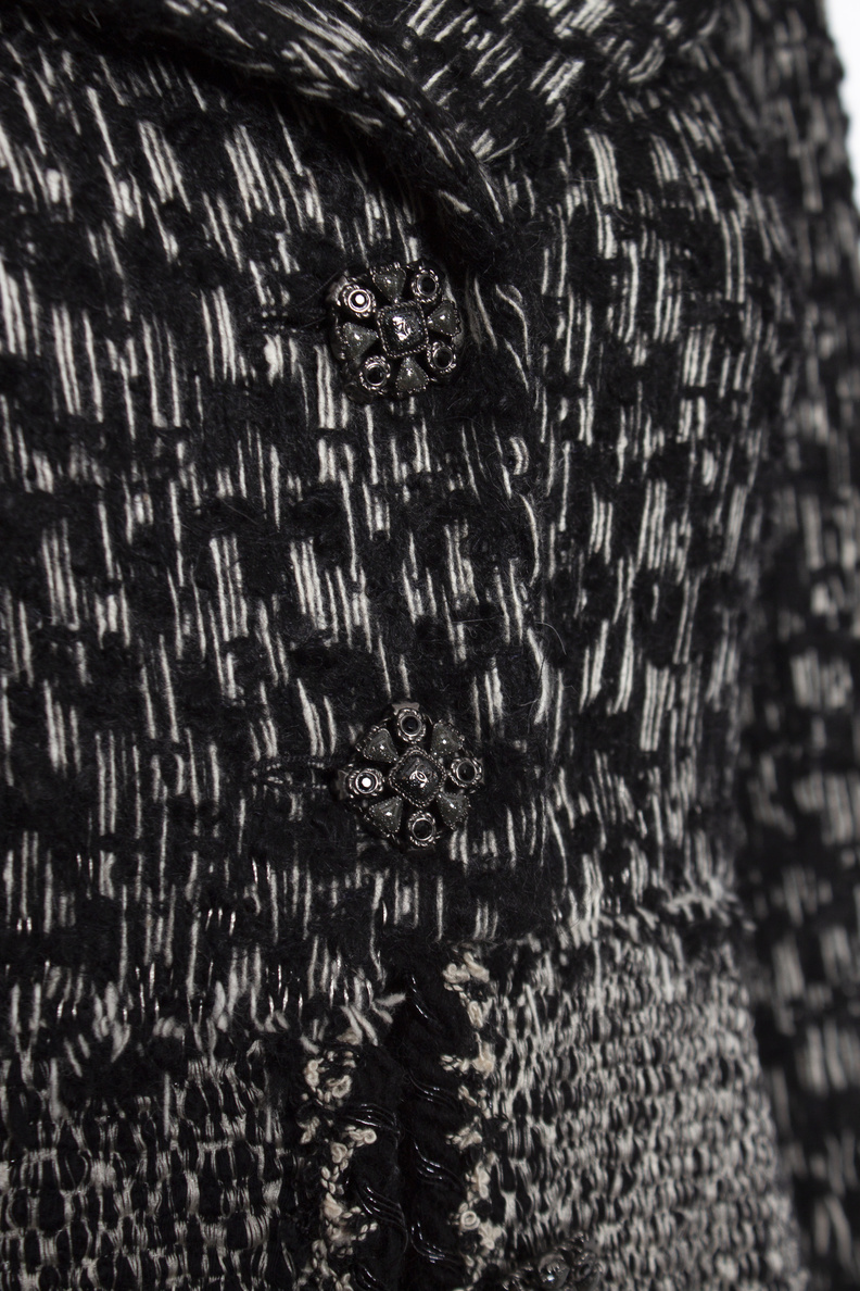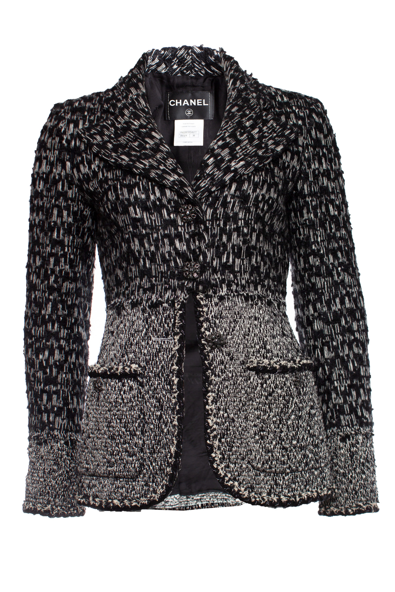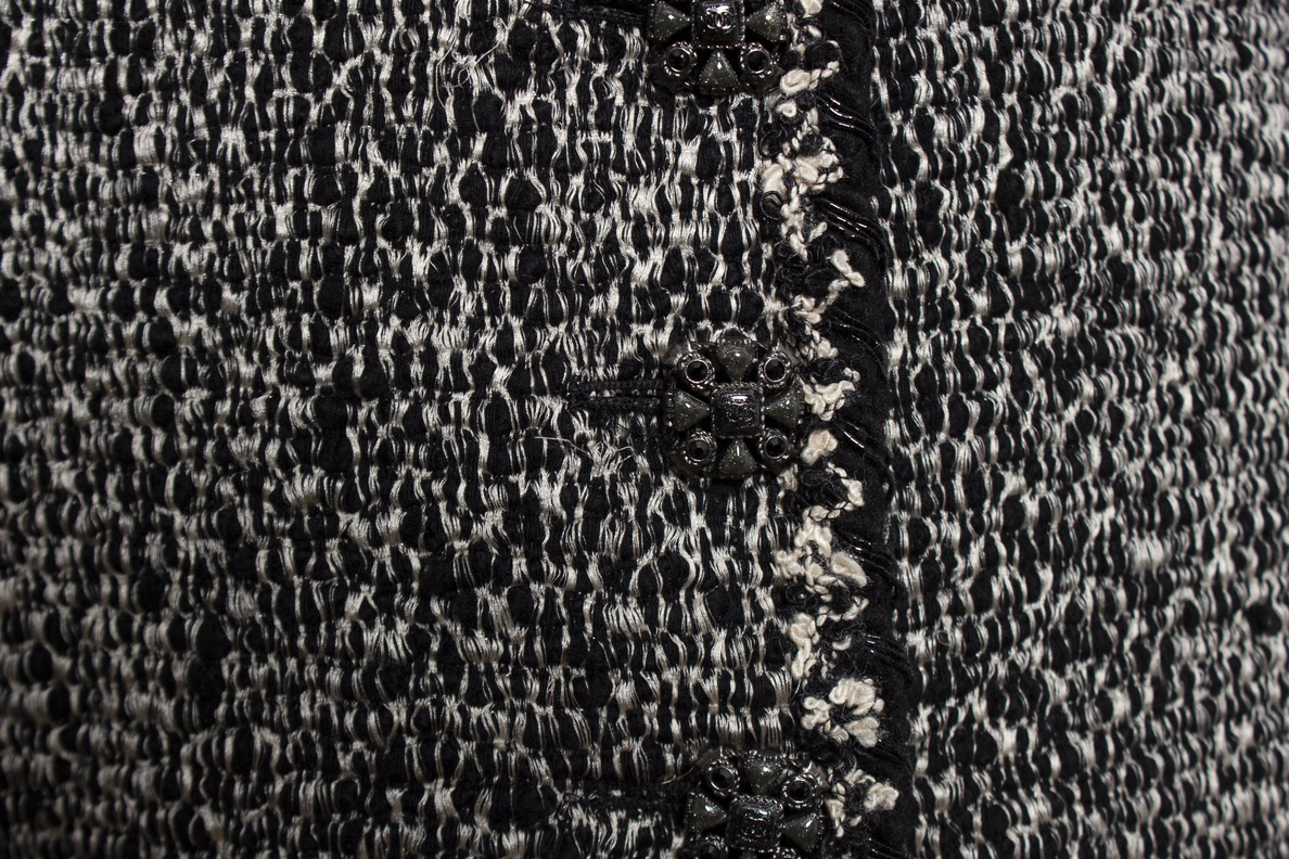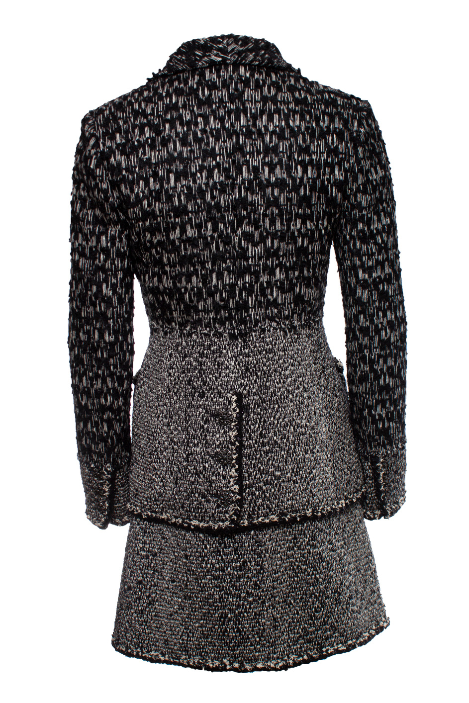 • Chanel, black and white boucle dress and blazer. The dress is in good condition and the blazer is in very good condition.