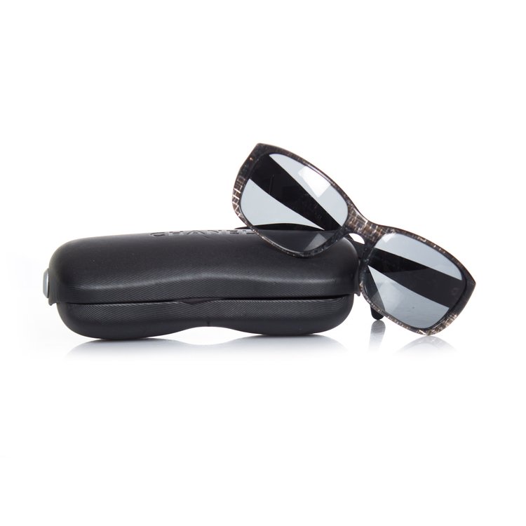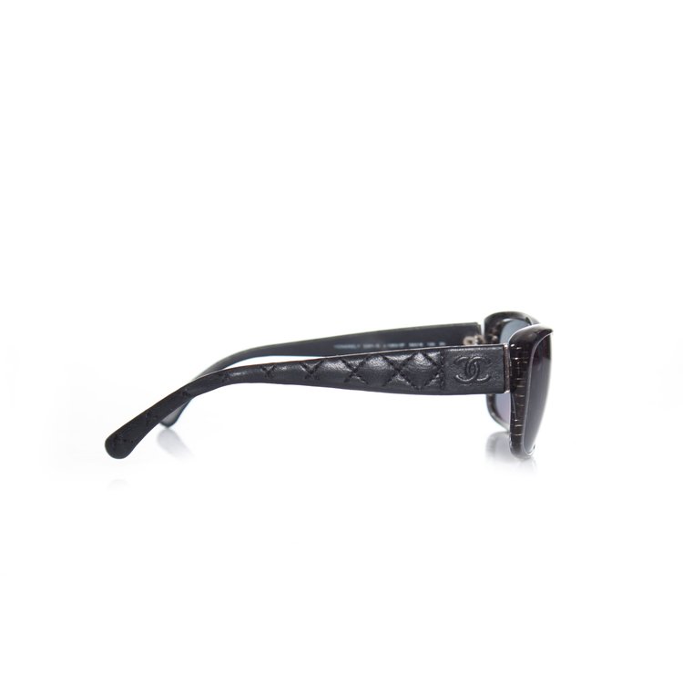 Chanel, Black Glitter Frame and Leather Quilted Sunglasses.