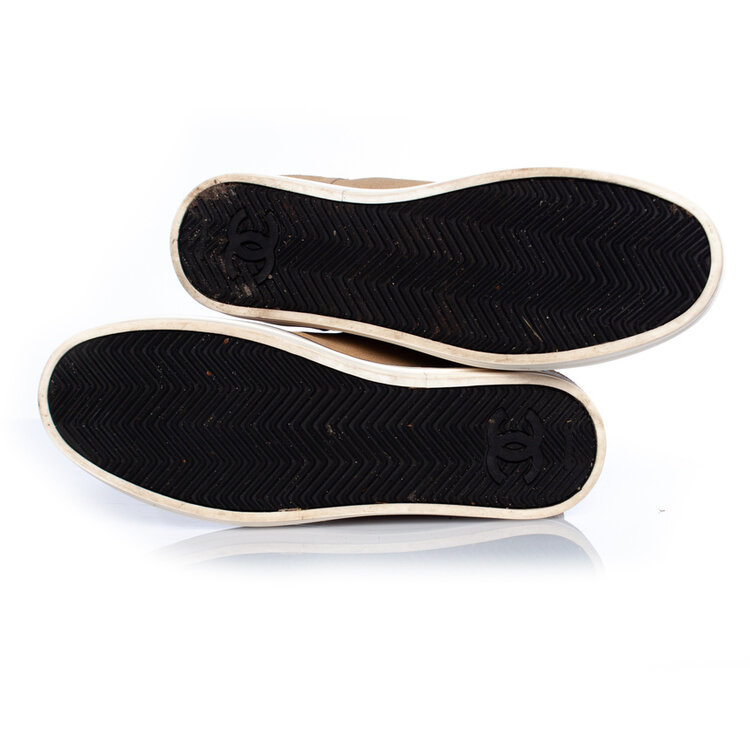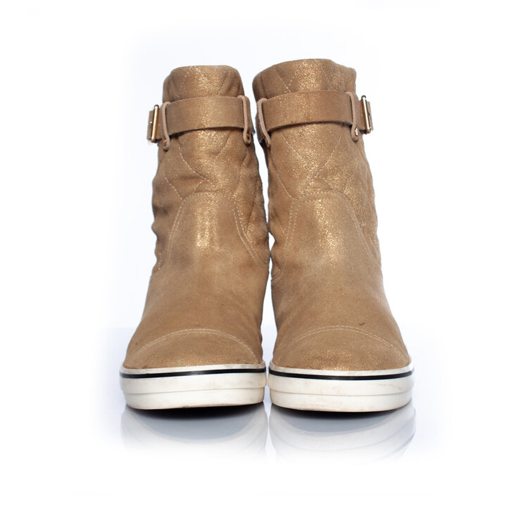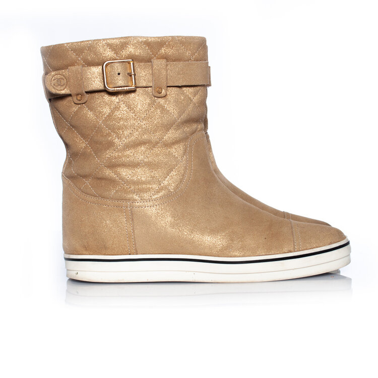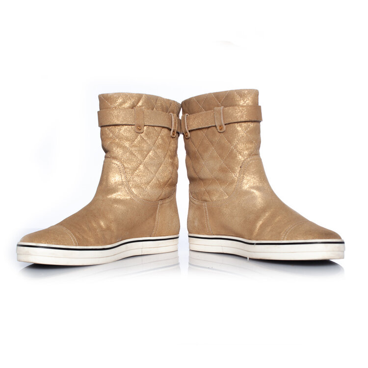 • Chanel, Gold quilted nubuck boots. The item is in good condition. Comes with box and dustbags