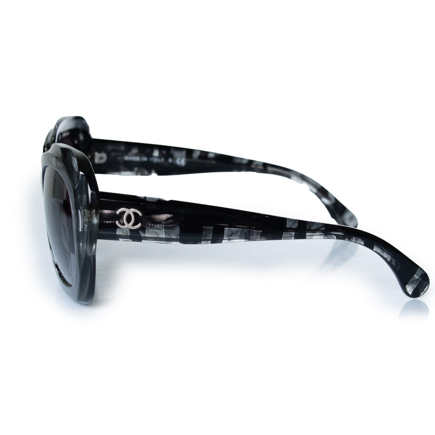 • Chanel, Grey oversized sunglasses. The item is in very good condition. A few very small scratches on the lenses. Comes with box, case, booklet and dustbag.