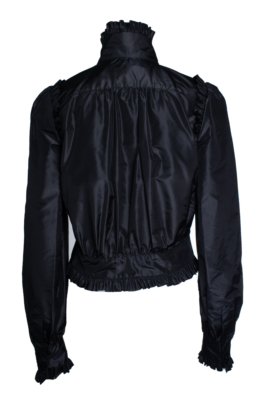 • Chanel, silk light ruffled bomber jacket in black. The item is in very good condition.