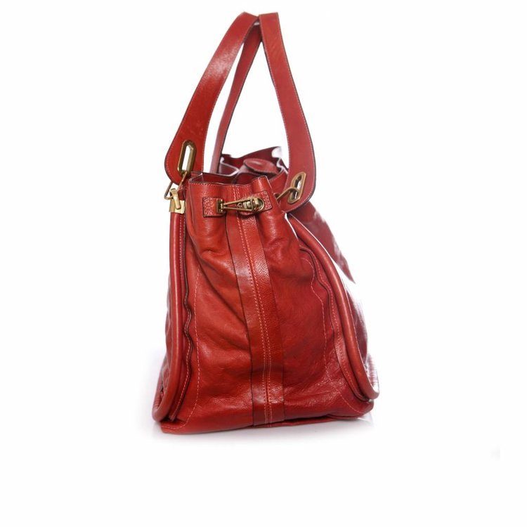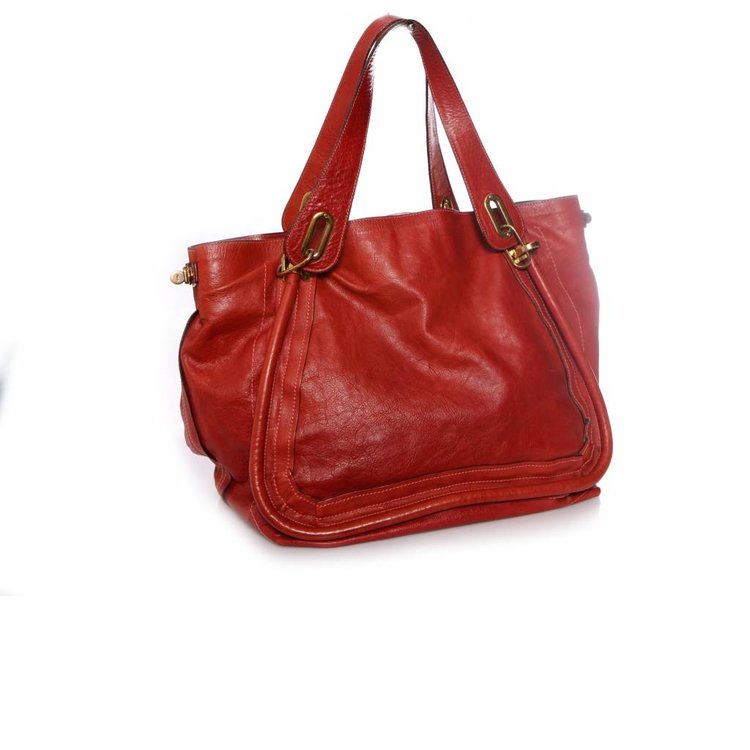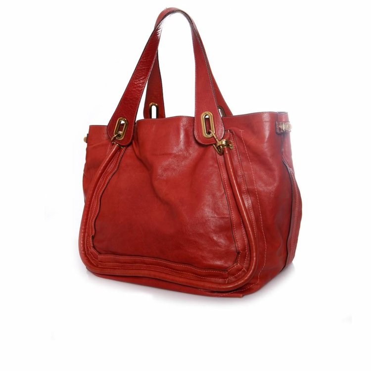 Chloe, Calfskin Large Paraty Shopper in red. This product is used but is still in good condition. Has some scratches all over the bag and color differences on the corners.